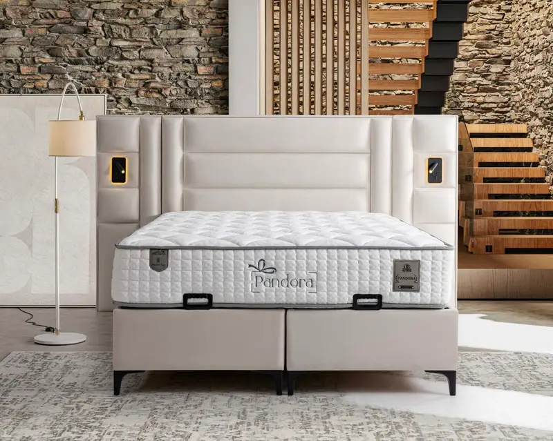 Patul Premium (160×200 cm) îmbină eleganța cu funcționalitatea. Tapițat într-un bej rafinat, oferă un aspect modern și versatil pentru orice dormitor. Este prevăzut cu ladă de depozitare spațioasă, susținută de o structură metalică solidă și pistoane cu aer pentru deschidere ușoară. Ideal pentru confort și organizare eficientă.